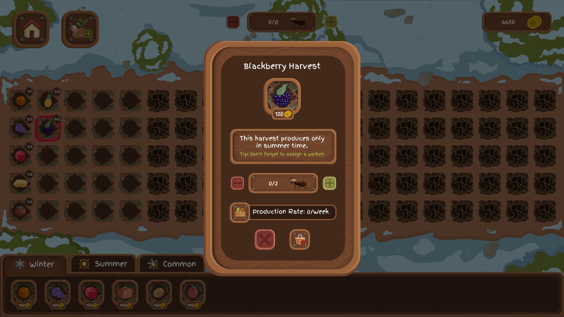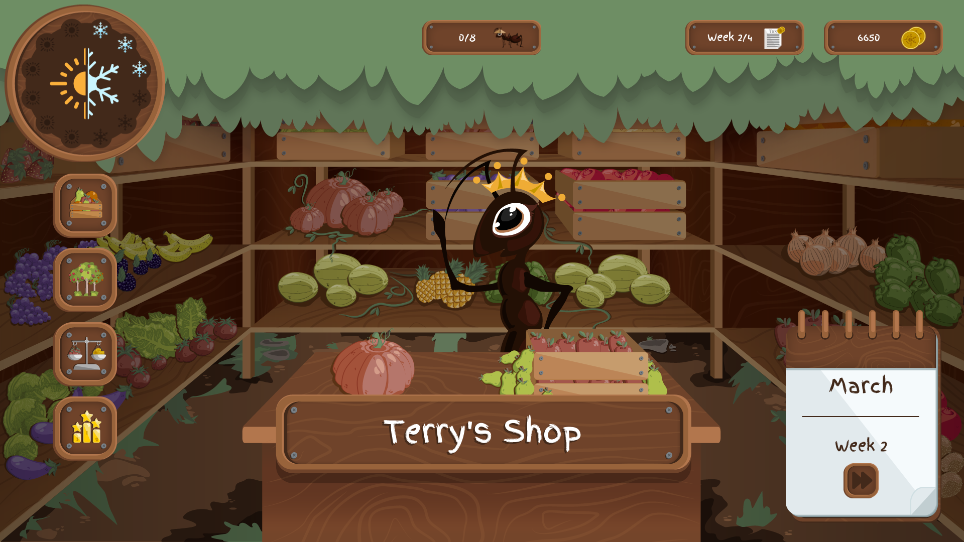 In game, players will play as the Ant Queen and manage the shop, garden, storage and workers depending on the seasons and the weekly sales reports.