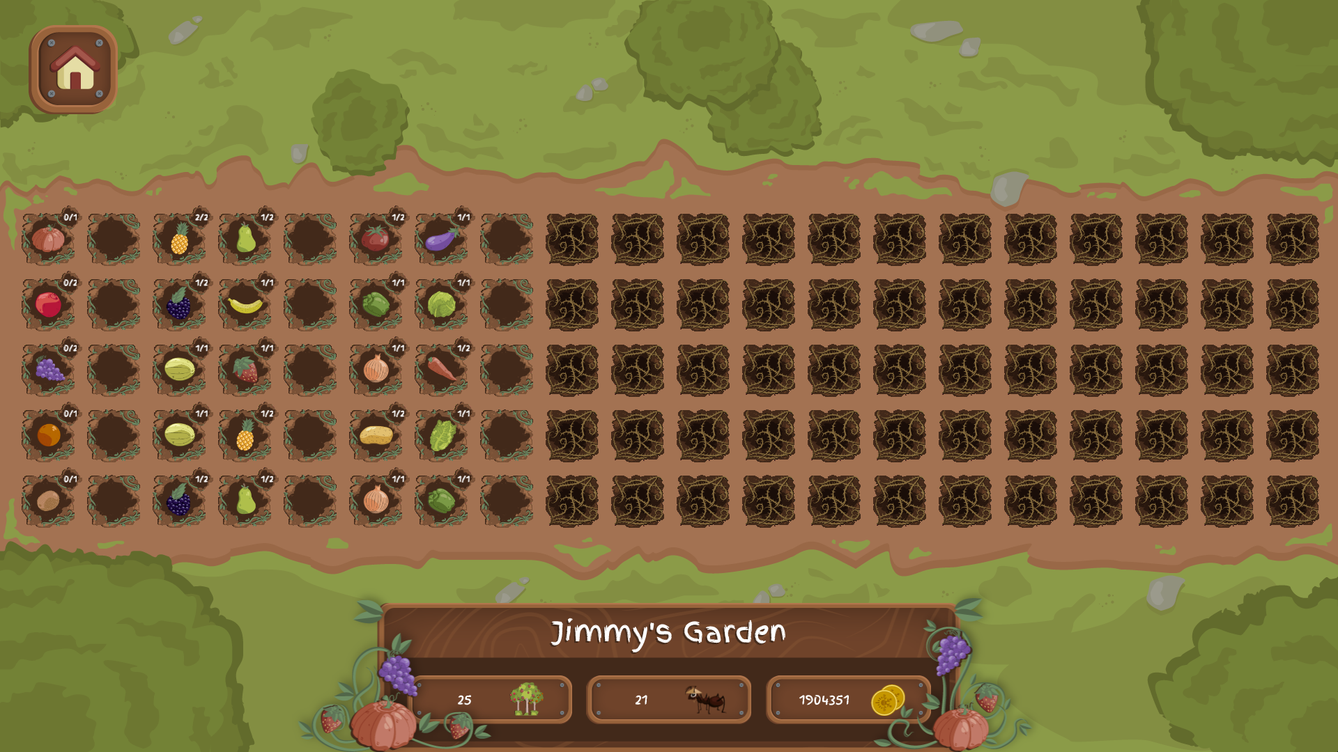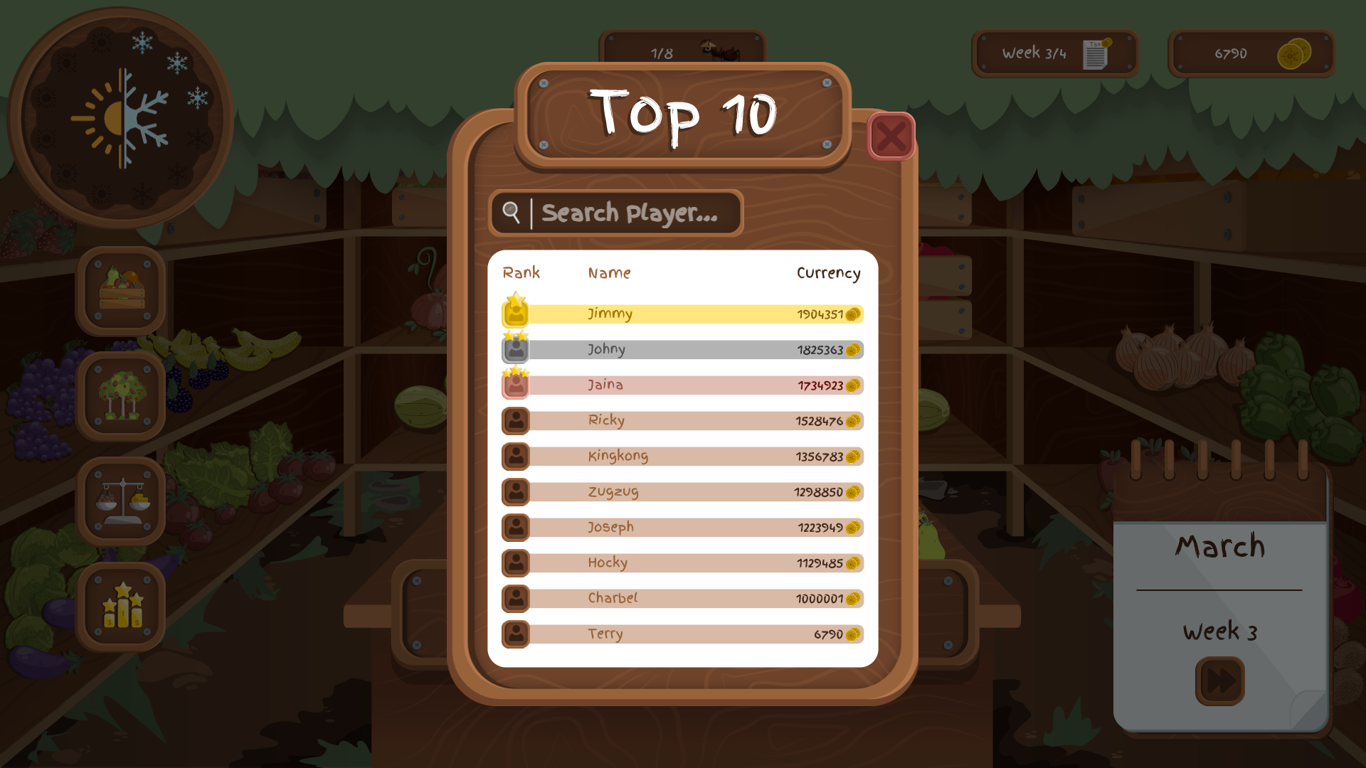 Players will also interact with other players online, thought the Central Market (place to trade stocks), and build a storage of fruits and vegetables, by planting trees and plants in the garden, and haversting them with the selected workers.